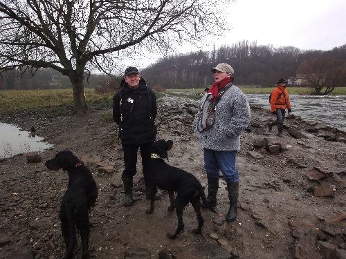 Die Ruhr führte viel Wasser und war auf Grund ihrer Strudel und Strömungen mit Vorsicht zu genießen. Aber unseren Settern reichten die Pfützen, der Schlamm und das nasse Gras "zur Erfrischung" ;o)