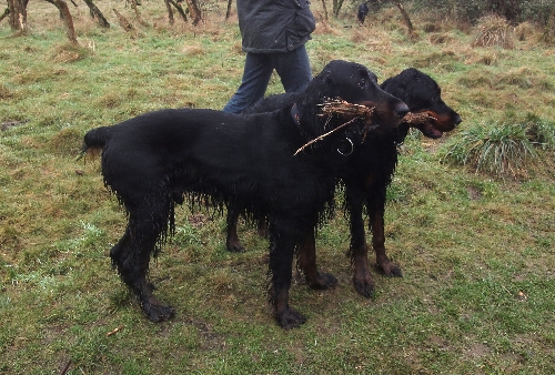 Die Runde war diesmal leider komplett Irish Setter-los. Gordon und English Setter tummelten sich auf den Wiesen und fanden den Schlamm gar nicht schlimm, im Gegenteil :o)