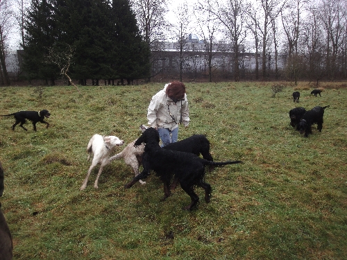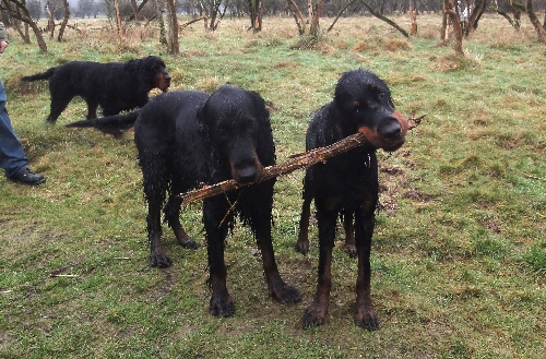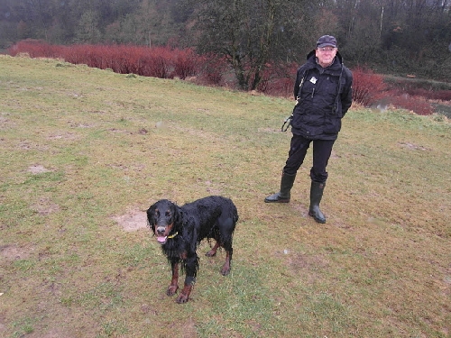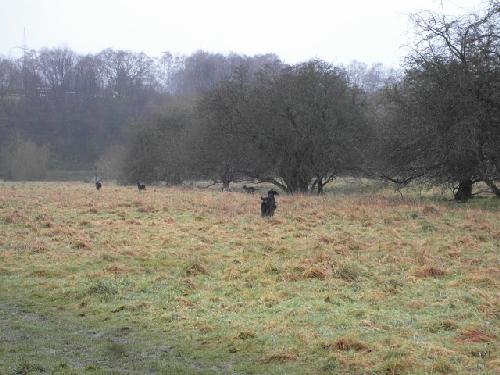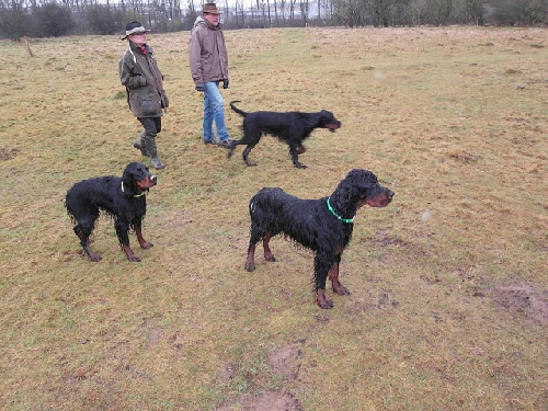 Die Runde war diesmal leider komplett Irish Setter-los. Gordon und English Setter tummelten sich auf den Wiesen und fanden den Schlamm gar nicht schlimm, im Gegenteil :o)
