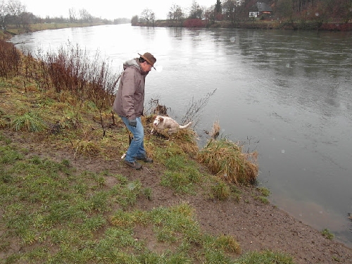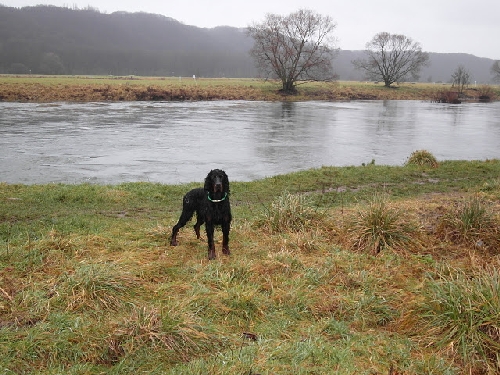 Die Ruhr führte viel Wasser und war auf Grund ihrer Strudel und Strömungen mit Vorsicht zu genießen. Aber unseren Settern reichten die Pfützen, der Schlamm und das nasse Gras "zur Erfrischung" ;o)