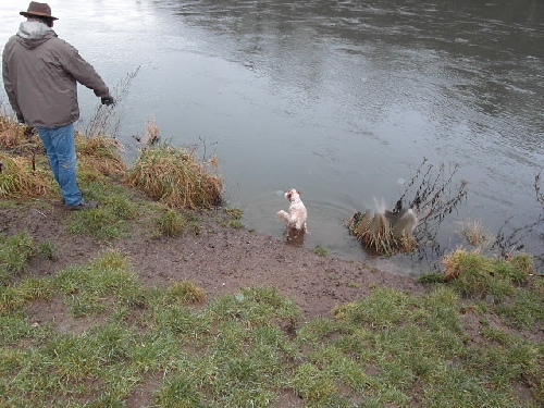 In der Nähe der Henrichshütte in Hattingen trafen sich die RheinRuhrSetter zur letzten Aktion im Jahr 2011, dem Silvesterspaziergang. Durch den vielen Regen in den letzten Tagen waren wir bereits auf schlammige Bodenverhältnisse vorbereitet. "Quoten-Cocker" Rudi wurde diesmal wieder untersützt von den beiden Cocker-Youngsters Da Vinci und Dakar. Es zeigte sich, dass sie genauso wasserverrückt sind wie unsere Setter. Sie folgten Katrin und Christian begeistert zum Anleger und gingen auch ein Ründchen baden.